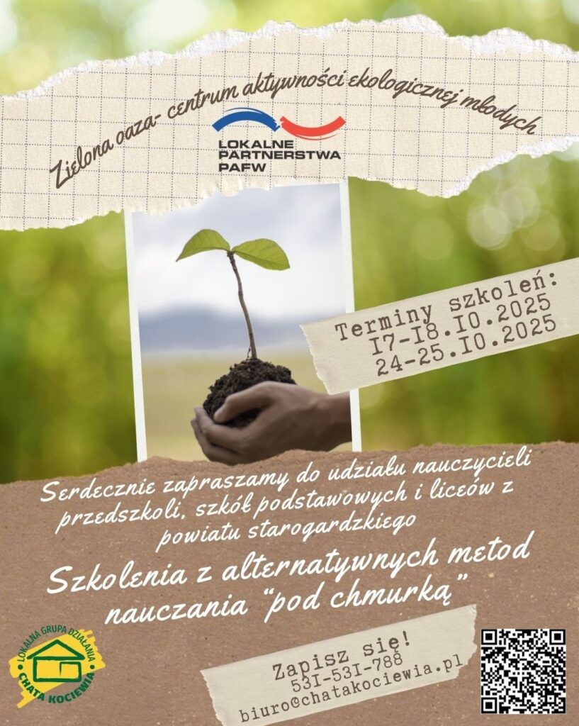 Wychodzimy z propozycją ciekawych szkoleń z alternatywnych form nauczania dla nauczycieli oraz osób zajmujących się szeroko rozumianą edukacją.  Warunkiem uczestnictwa jest zgłoszenie swojej kandydatury poprzez wypełnienie formularza zgłoszeniowego. Link poniżej: